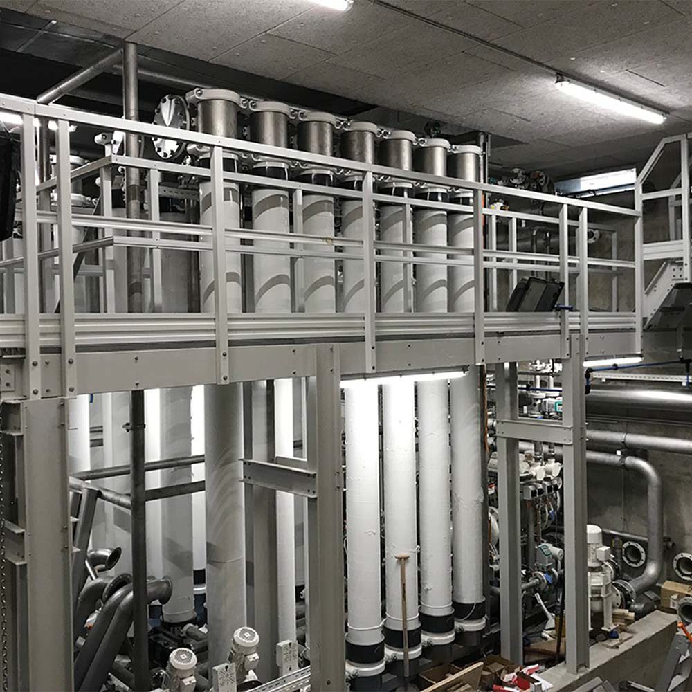 Trwałe i odporne na korozję kraty i profile FRP są dobrze przystosowane do pomostów i platform przemysłowych w agresywnych środowiskach dzięki ich odporności na rdzę i gnicie. Dodatkowo, lekki materiał kompozytowy pozwala na łatwą modyfikację na miejscu, wymaga minimalnej konserwacji i nie przewodzi prądu. Pomosty i platformy posiadają powierzchnie antypoślizgowe i są wyposażone w system poręczy, aby zapewnić niezbędne środki bezpieczeństwa. Pomosty są zaprojektowane do różnych zastosowań, takich jak pomosty serwisowe do urządzeń, przejścia nad przeszkodami lub przejścia nad rurami.