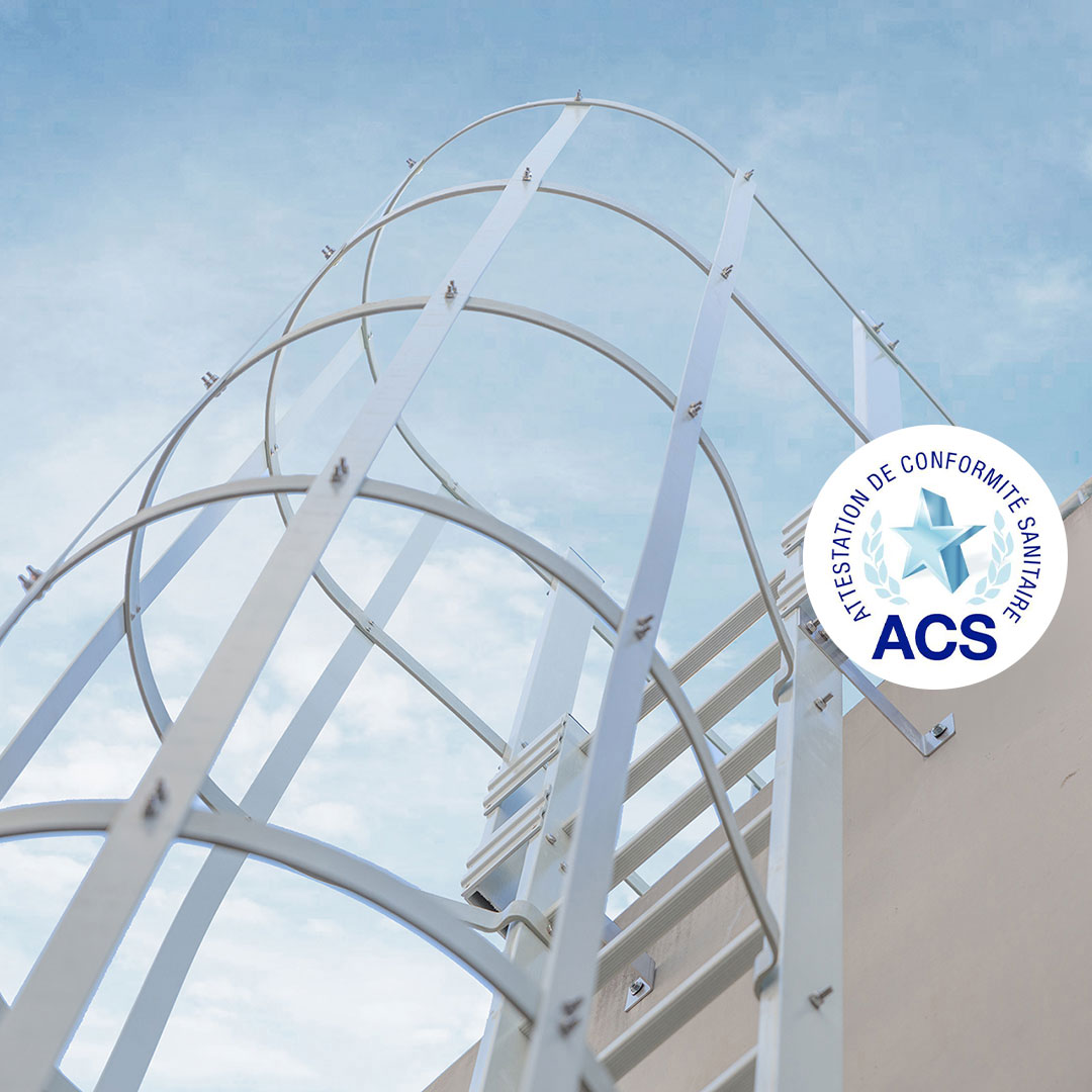 Drabiny nadające się do kontaktu z wodą pitną (“ACS” – Attestation de Conformité Sanitaire);